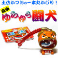一本釣り漁師が釣ってきたぴちぴちのカツオを、大口を開けて喰らう、かわいい闘犬のストラップです。